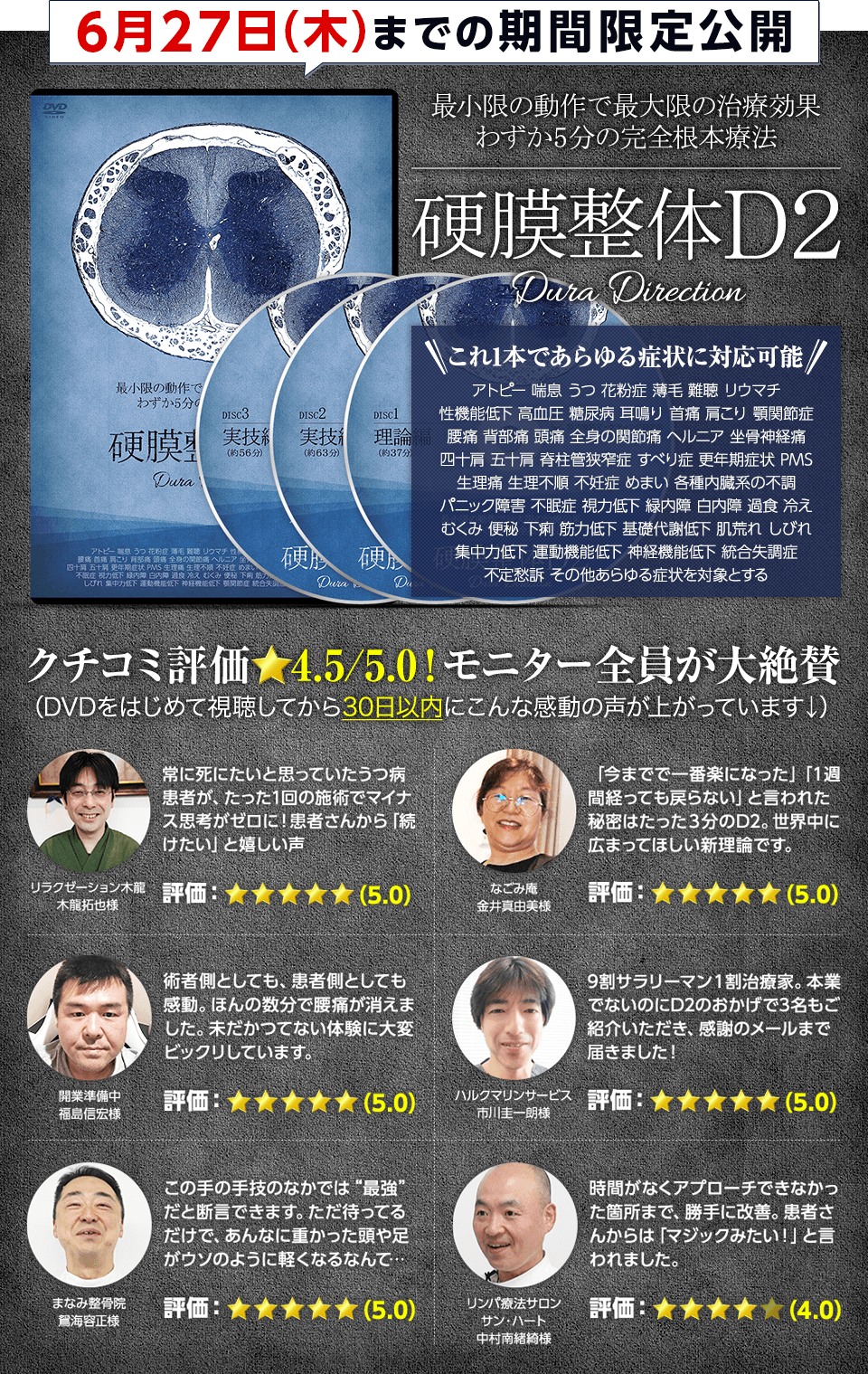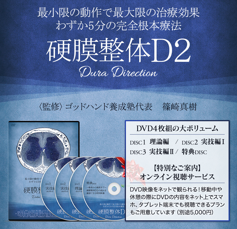 | 最小限の動作で最大限の治療効果 『硬膜整体D2』DVD |