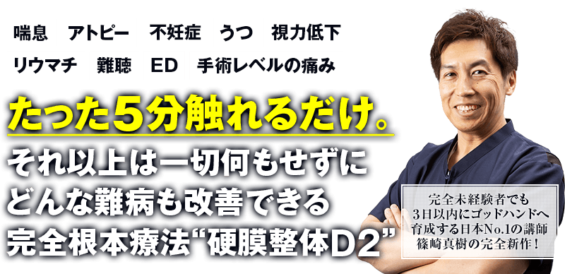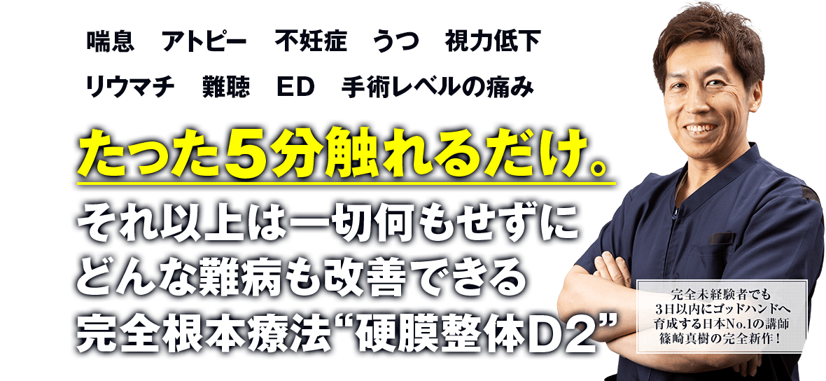 はじめまして、硬膜整体D2を開発した篠崎真樹です。